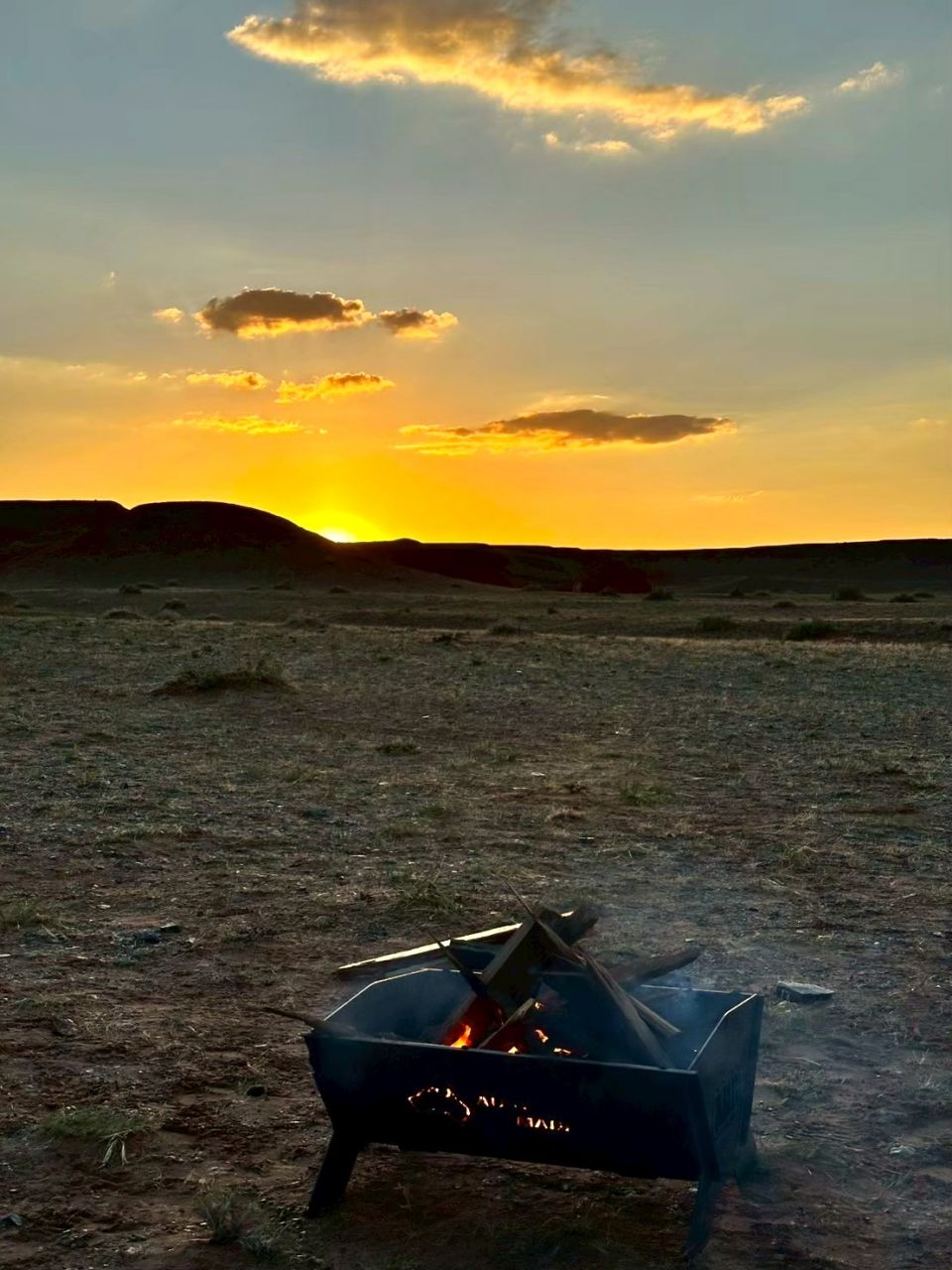 フレイミング・クリフでは、ARBファイヤーピットの周りにARBキャンプチェアを置いて日没を眺めながらキャンプファイヤー🔥