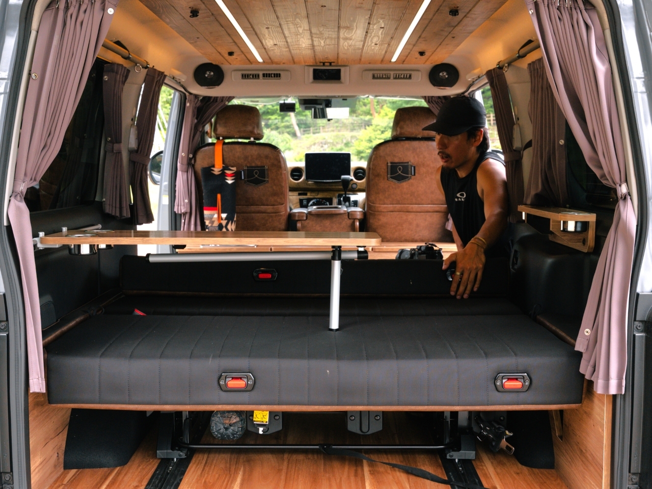 シートアレンジの自由度が非常に高く、“普段は8人乗りミニバン・休日は車中泊バン”として使い分けできます。