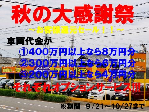 明日9月21日~10月27日までにご成約頂いたお客様を対象に・・・
